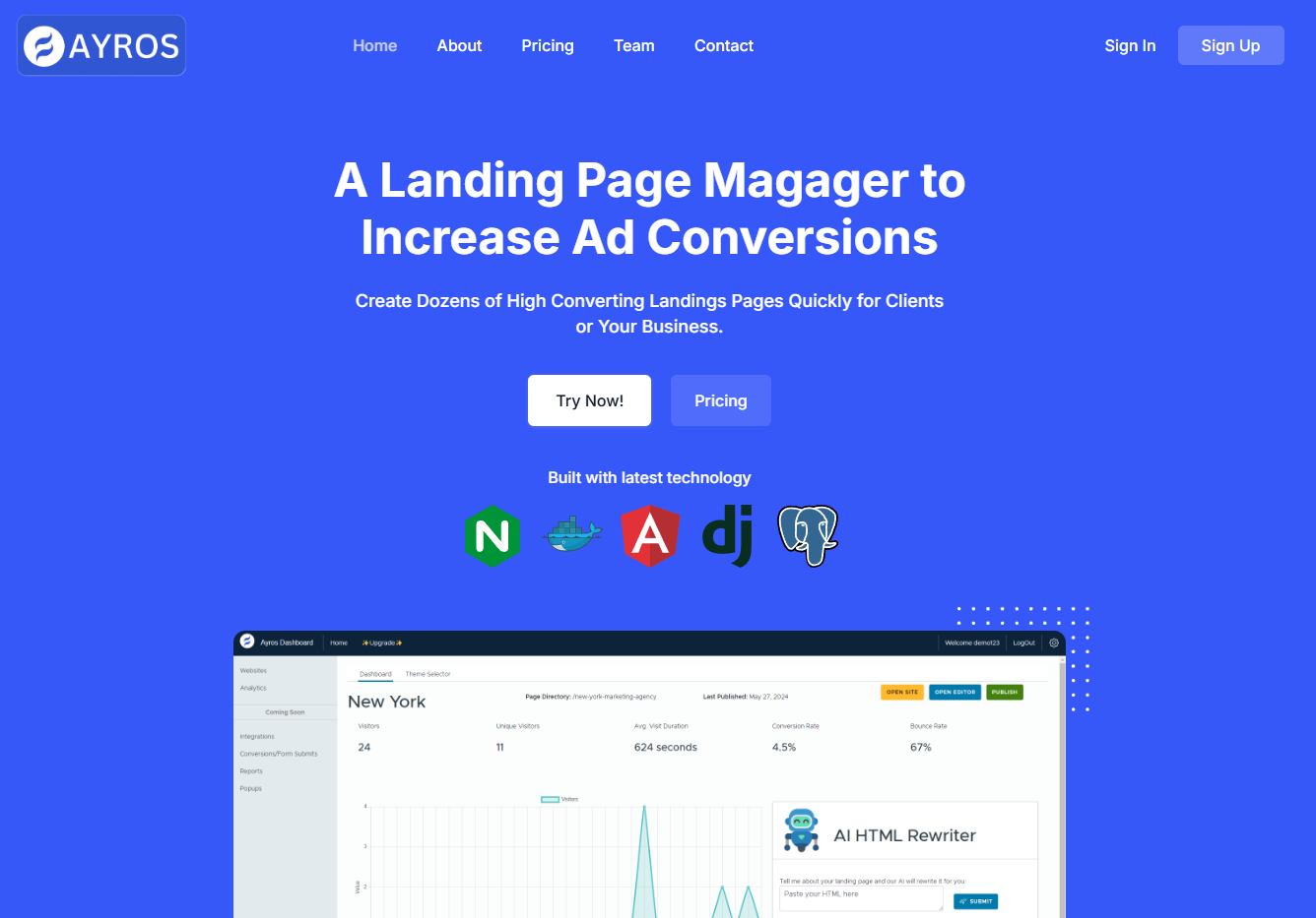 A website builder used to create landing pages rapidly with Ai to increase Ad conversions.